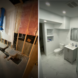 1. Rénovation Complète: La rénovation complète est la plus intensive et implique une refonte complète de la salle de bains. Cela peut inclure la démolition complète de l’espace existant, la reconstruction de l’agencement, l’installation de nouveaux appareils sanitaires, de nouveaux revêtements, de nouveaux systèmes de plomberie et d’électricité, ainsi que des fonctionnalités haut de gamme telles que des douches de luxe ou des baignoires autoportantes.